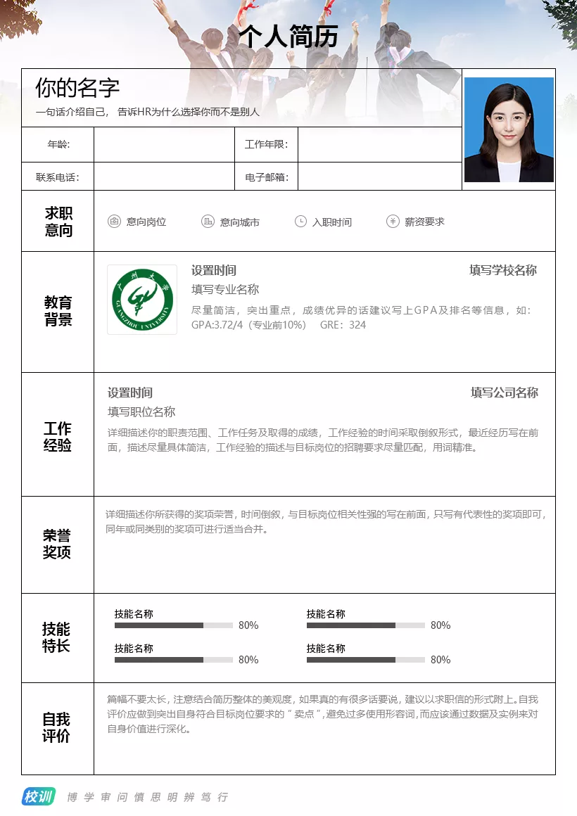 来自著名人力资源公司、金融机构、大型互联网公司的资深HR任你挑选, 拥有至少5年以上工作经验,负责或深度参与企业招聘流程。 一对一沟通百分百定制,带你分析目标岗位相关性,深入挖掘个人能力,在 充分了解你的情况后扬长避短,用简历语言为你书写一份高质量的「HR最 喜欢的简历」,求职通过率提升80%!